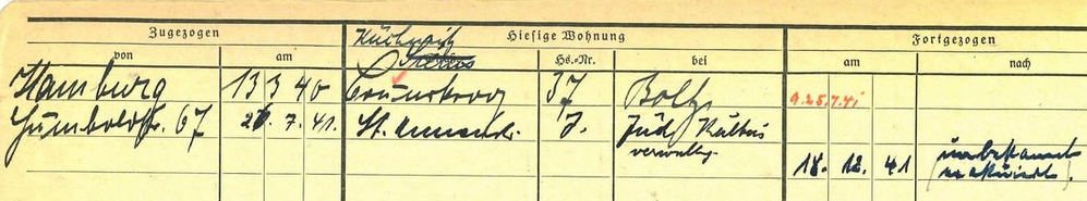 Juli 1941 Ummeldung in Lübeck, St.Annen-Straße 7.
