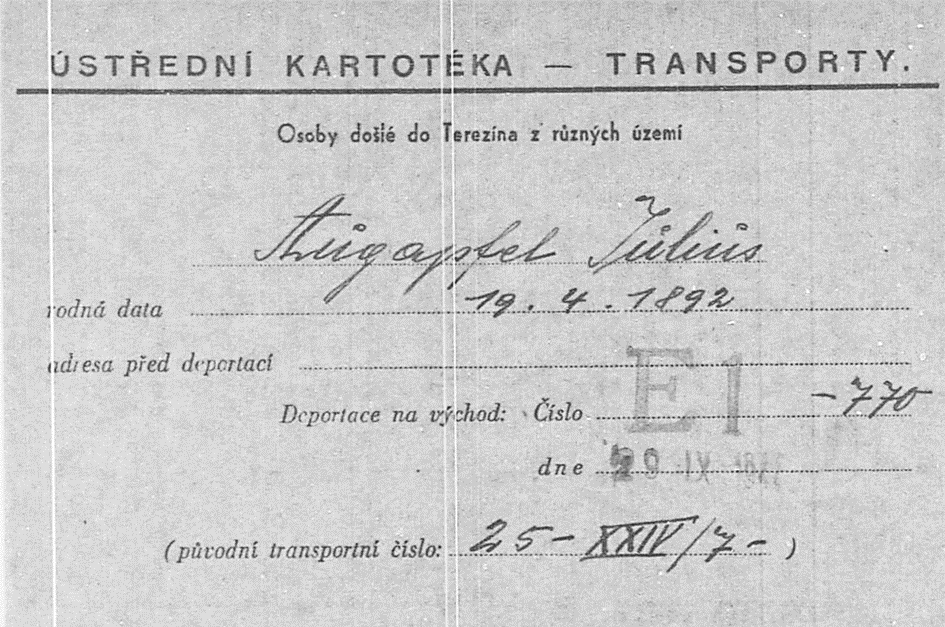 29.9.1944 Julius Augapfel auf dem Transport E l von Theresienstadt nach Auschwitz