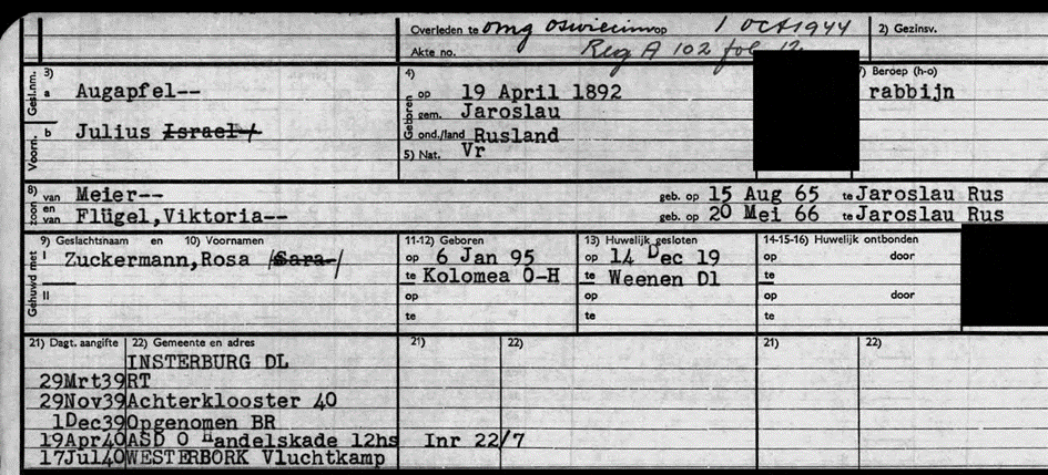 24.6.1940 Einweisung der Eltern ins Vluchtelingenkamp Westerbork, „Oude kampbewoners“;