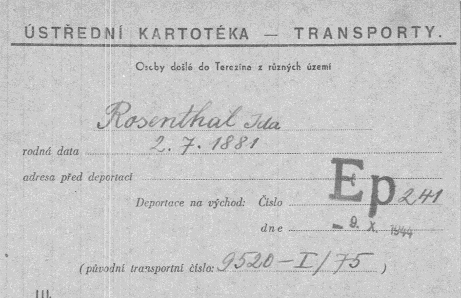 9.10.1944 Mutter Ida auf dem Transport E p von Theresienstadt nach Auschwitz