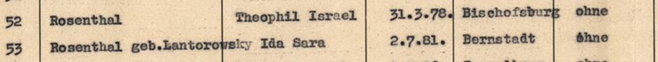 Mutter Ida Kantorowsky *2.7.1881 in Bernstadt, Oels; ✡ 12.10.1944 in Ausschwitz