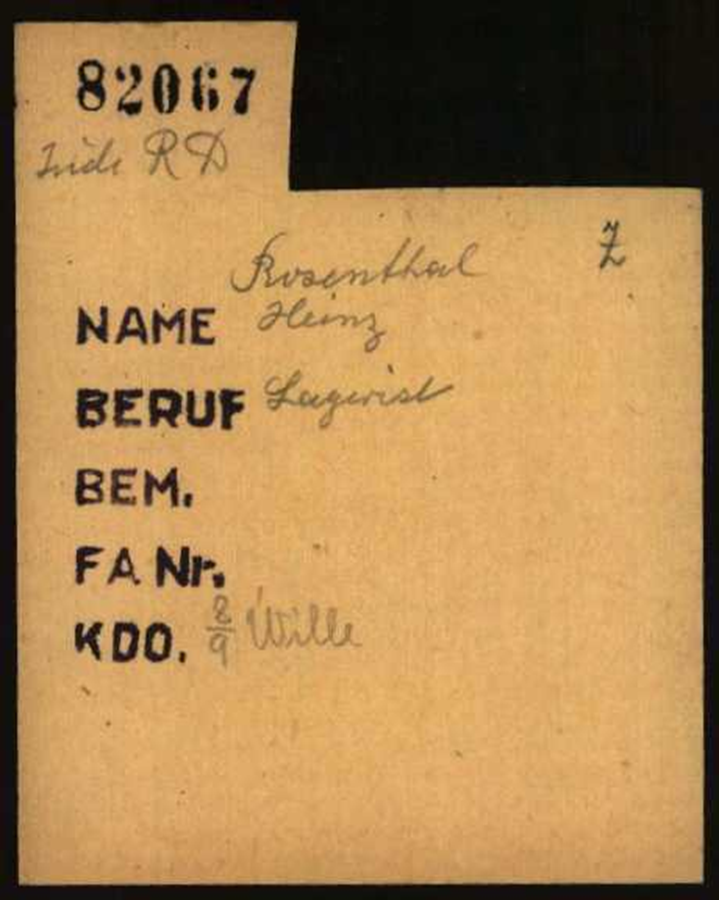 20.9.1943 Aufnahme von Heinz Rosenthal in das KL Kaiserwald