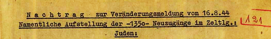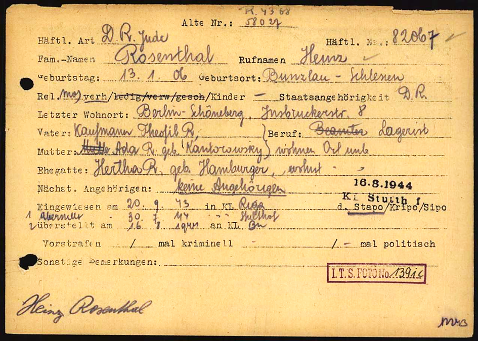 10.8.1944 Registrierung von Heinz Rosenthal in Stutthof