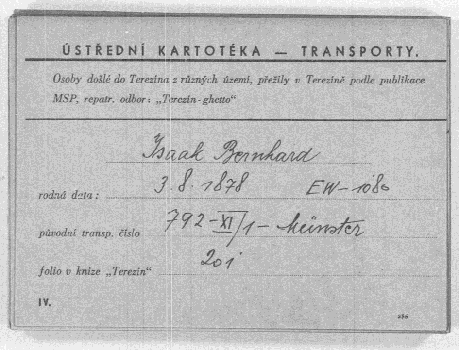 31.7.1942 beide Eltern auf dem Transport XI/1 aus Münster/Bielefeld nach Theresienstadt