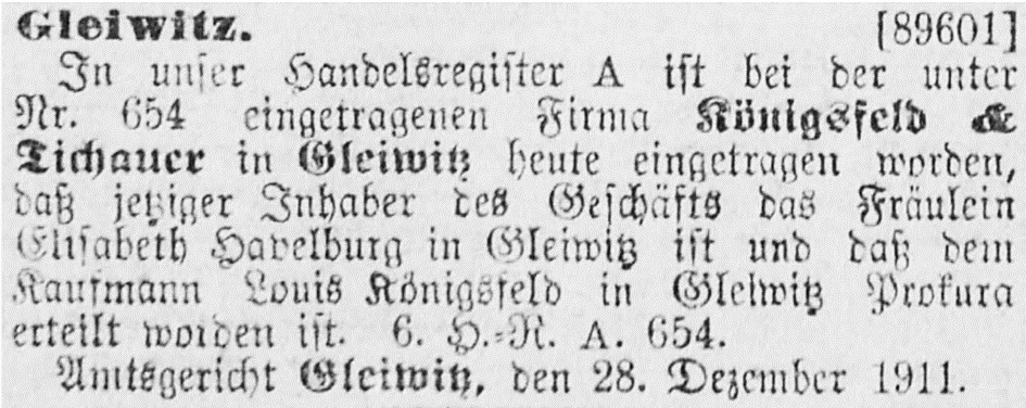 Vater Lejb „Loibel“ Louis Eliezer Jehuda Königsfeld *28.4/4.5.1867 Myslowitz; ✡ 22.9.1929 Gleiwitz