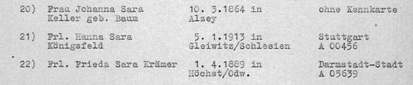 17.5.1939 Hanna Königsfeld in Stuttgart Olgastraße 129 bei der Minderheitenzählung