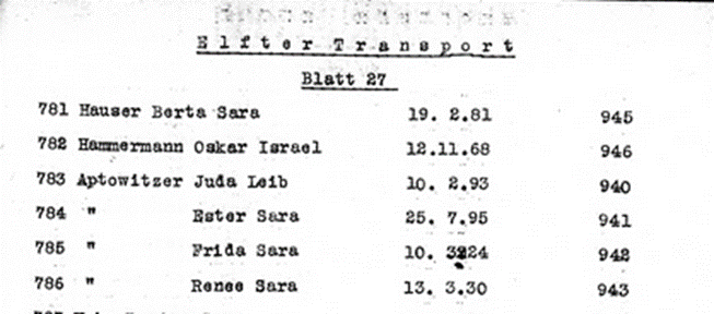 23.11.1941 beide Eltern und Schwestern auf dem Elften Transport von Wien nach Kaunas; 27.11.1941 Ankunft in Kaunas,Einsperrung im Fort IX