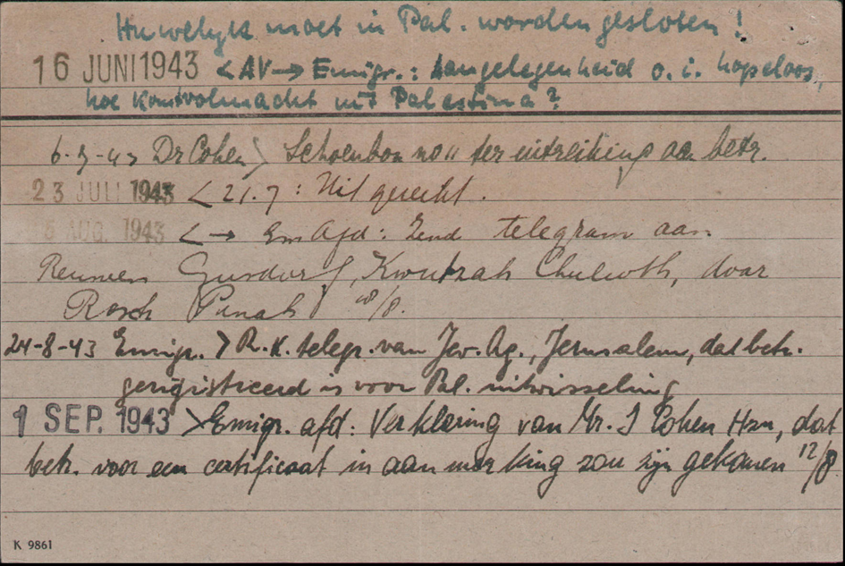 26.4.1944 von den etwa 1.300 Austauschjuden mit Palästina-Zertifikat werden 272 ausgewählt, vor allem Mitarbeiter des Joodse Raad Amsterdam und deren Familienangehörigen. Sie sollen ausgetauscht werden gegen „Deutsche Templer“, eine Sekte in Jerusalem.