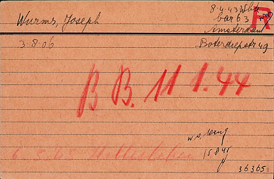 8.4.1943 Einweisung von Joseph Worms in das polizeiliche Judendurchgangslager Westerbork, Baracke 63
