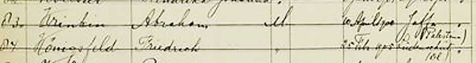 Abraham Krinkin *10.4.1900 in Jaffa, vermutlich als „Sjalach eines Kibbuz in Palästina