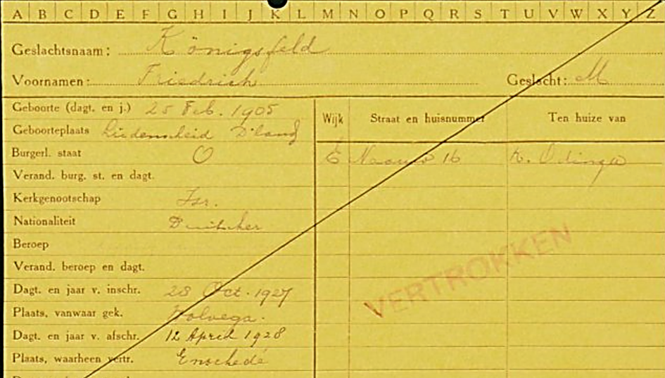 12.4.1928 Fritz Königsfeld von Leeuwaarden nach Enschede