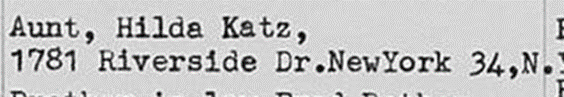 Tante Hilde Katz geb. Löwenstein *14.10.1901 in Gemen; ✡ Okt 1985 New York; oo Richard Katz