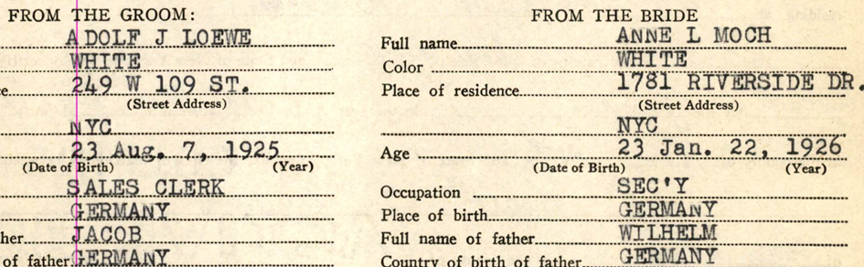 Heirat 11.6.1949 in Manhattan mit Adolf Loewe *7.8.1925