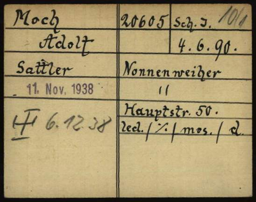 11.11.1938 Einweisung von Onkel Adolf ins KL Dachau, Häftlingsnummer 20605
