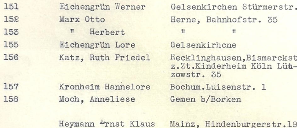 2.2.1939 Anneliese Moch zusammen mit ihrer Cousine Ruth Katz auf dem dritten Kindertransport (3b) über Köln via Emmerich, Hoek v. Holland nach Harwich von dort weiter nach London; auf diesem Transport reisten auch 15 Mädchen und Jungen der JAWNE aus Köln nach London; die Mädchen wurden in einem Hostel in der Willesden Lane 243 aufgenommen, die Jungen vermutlich im nahegelegenen Hostel Minster Road Nr. 1