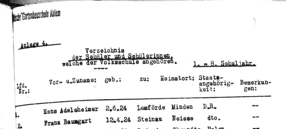 17.5.1939 Hans Adelsheimer in der Isr. Gartenbauschule Ahlem bei der Minderheitenzählung