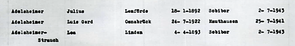 Vater Julius Adelsheimer *18.1.1892 in Lemförde ; ✡ 2.7.1943 in Sobibor