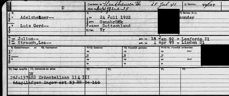 25.7.1941 offizielles Todesdatum von Gerd Adelsheimer im KL Mauthausen, angeblich wegen „Herzschwäche“