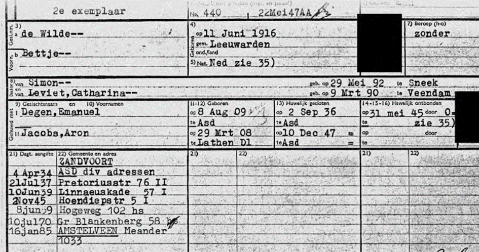 2.11.1945 Witwe Bettje und Sohn Marcus sind wieder in Amsterdam gemeldet