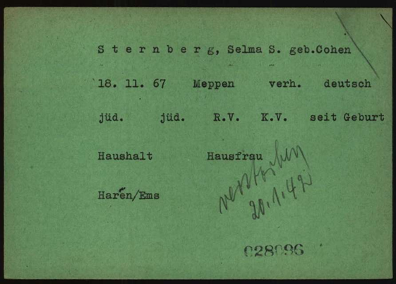 Minna Sternberg *5.3.1901 in Haren Sternberg; ✡ Dezember 1944 im KL Stutthof