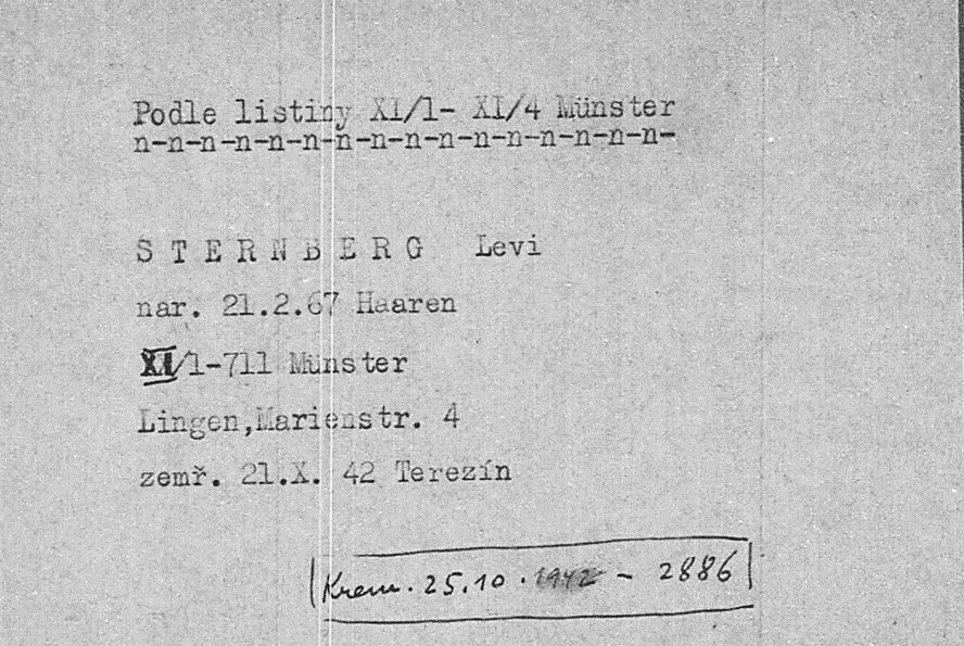 Vater Levi Sternberg *21.2.1867 in Haren; ✡21.10.1942 in Theresienstadt