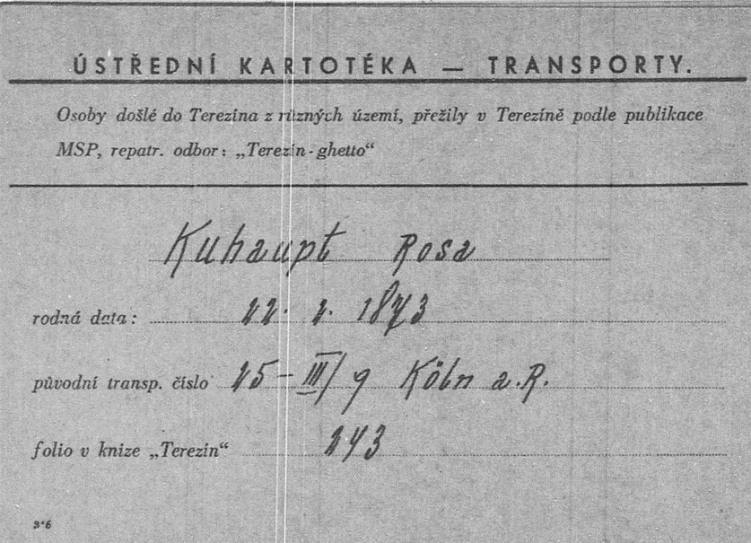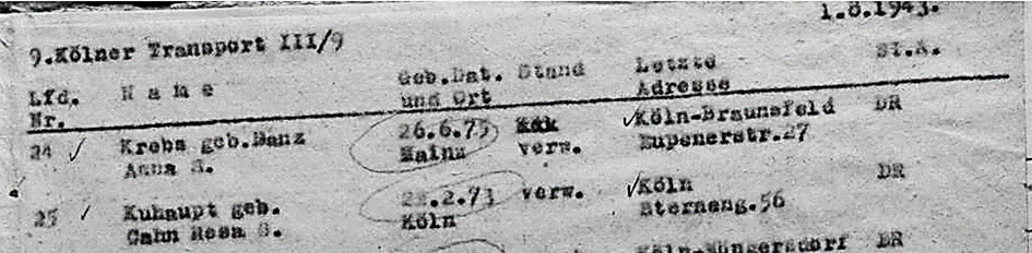 1.8.1943 Mutter Rosa auf Transport III/9 von Köln nach Theresienstadt
