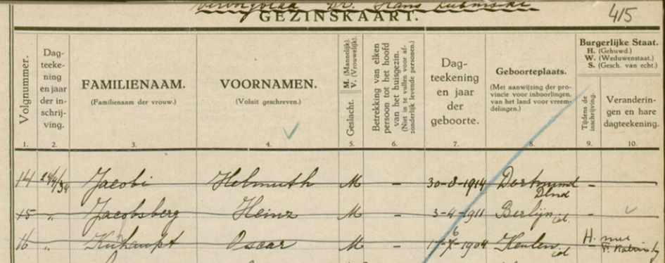 24.4.1934 Oscar Kuhaupt angemeldet zur Hachschara ins Joodse Werkdorp Wieringermeer