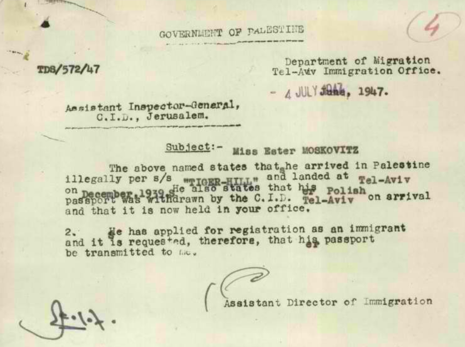 Staatsarchiv Israel, Mandat zur Einbürgerung in Palästina, 1937-1947