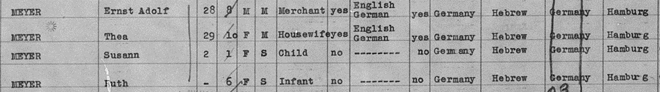 21.1.-3.2.1939 Thea mit Ehemann Ernst Meyer und den Kinder Susann und Ruth auf der SS GEROLSTEIN von Vlissingen nach New York