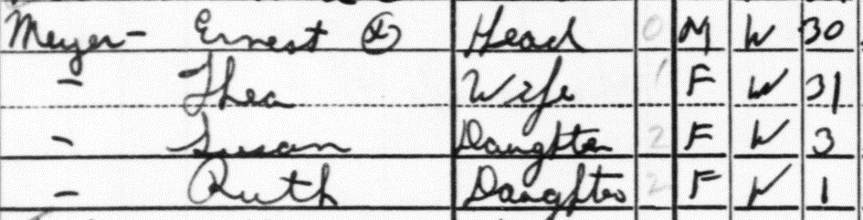 4.4.1940 Thea und Ernst Meyer mit beiden Töchtern erfasst in Queens, New York bei US Census
