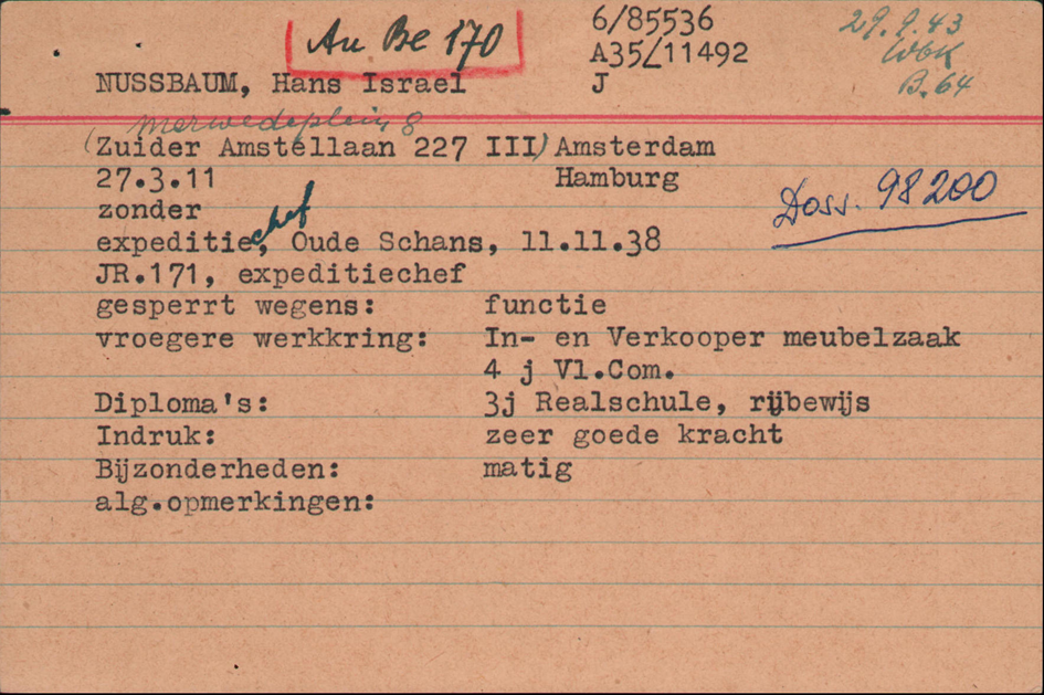 Hans Cohen später Chef der Expositur, Expeditie des Joodse Raad; die Expositur war eingerichtet als Verbindungsglied zwischen dem Joodse Raad und der Zentralstelle für jüdische Auswanderung des SD in Amsterdam; Leiter der Zentralstelle war SS-Hauptsturmführer Ferdinand Aus der Fünten; dieser setzt Hans Nussbaum später auf seiner persönliche „Au Be 170-Liste“ der nicht verzichtbaren Mitarbeiter