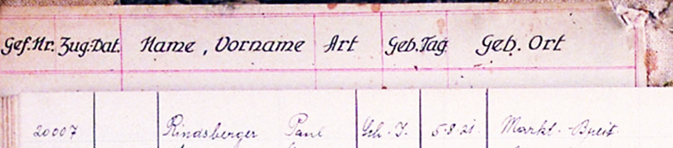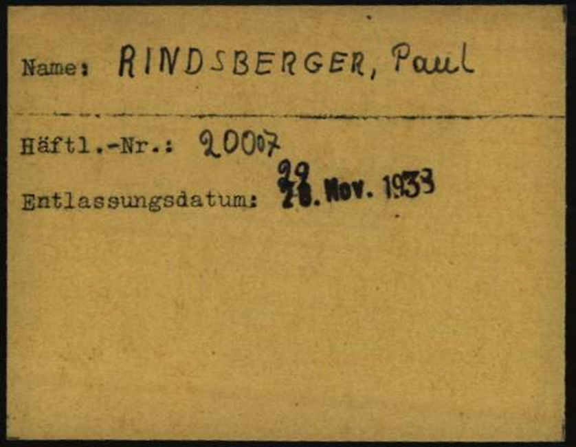 Paul Rindsberger erhält die Häftlingsnummer 20007