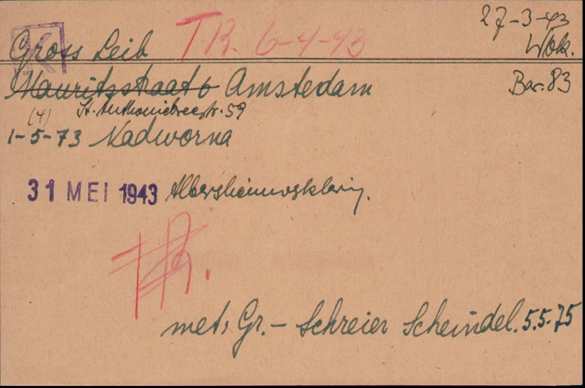 27.3.1943 Vater Leib eingewiesen in das polizeiliche Judendurchgangslager Westerbork, Baracke 83