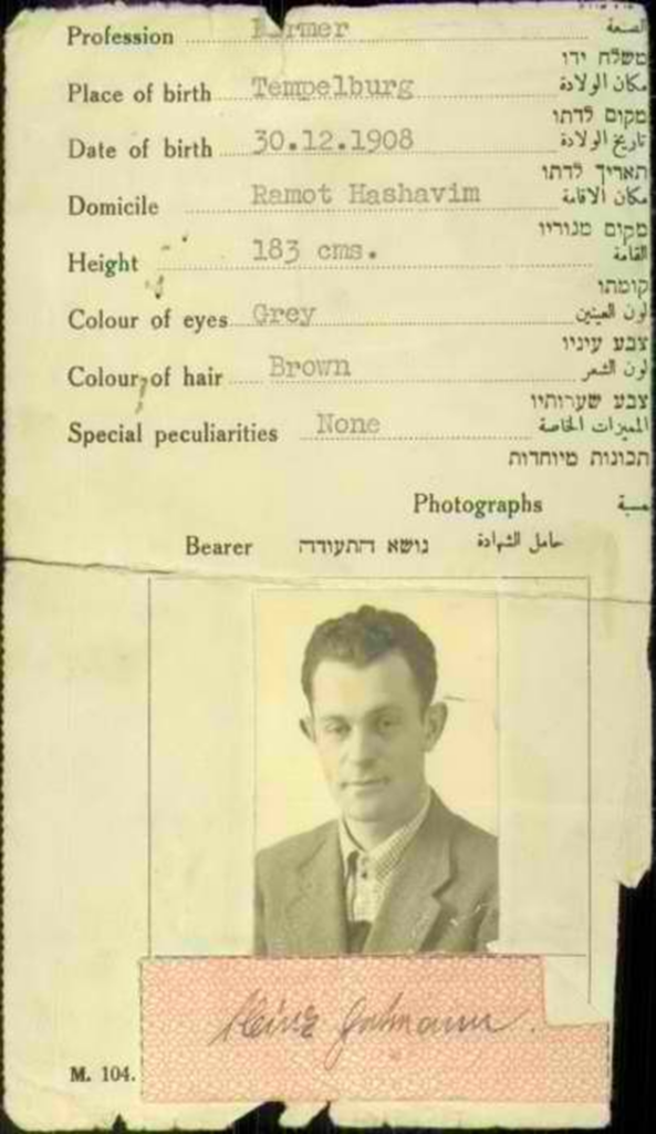 27.3.1935 Einreise von Bruder Heinz und Frau Ilse Gutmann in Haifa mit dem Kapitalistenzertifikat der Kategorie A(1)