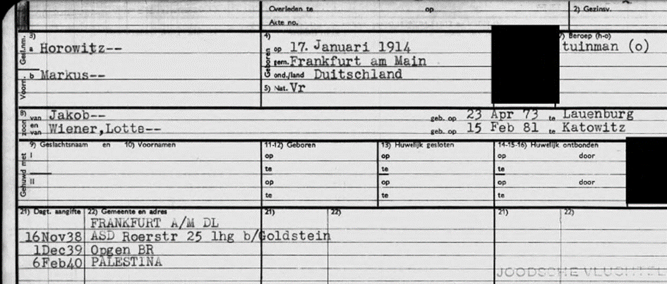 Josef Horovitz *13.1.1910 in Frankfurt; ✡ ?; oo Ruth Rosemann (*19.1.1914 in Stettin)
