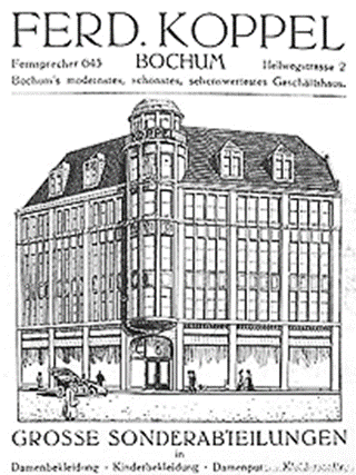 1904 Sigmund Heymann wird Geschäftsführer im Bekleidungshaus Ferdinand Koppel in Bochum, Hellweg 2 zusammen mit Albert Rosenberg
