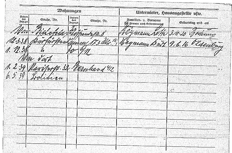12.3.1938 Umzug nach Berlin, Kurfürstendamm 173; Meldekarten