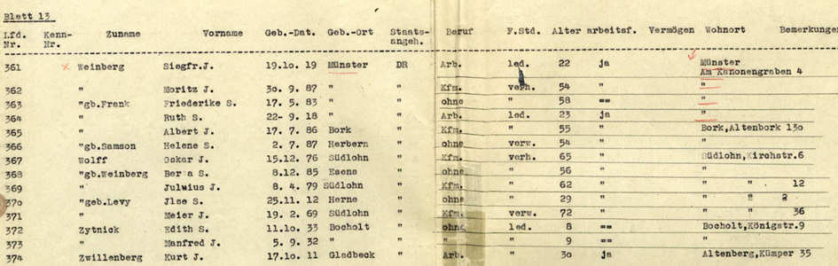 10.12.1941 Sohn Kurt aus Altenberge nach Münster in das Sammellager Gertrudenhof verbracht