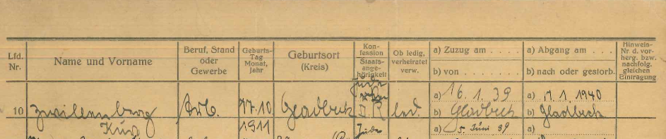 Umzug von Fridolin Zwillenberg nach Dinslaken, Weseler Straße 206; das sogenanntes „Judenhaus“ in der Weseler Str. 206 war im Besitz der Familie Fuldauer. Hier lebte auch Hans Isaacson und Frau Ilse