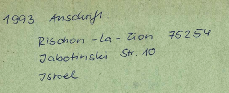 Adressen Leipzig, Nordstraße 3; Spreenhagen; Rishon LeZion