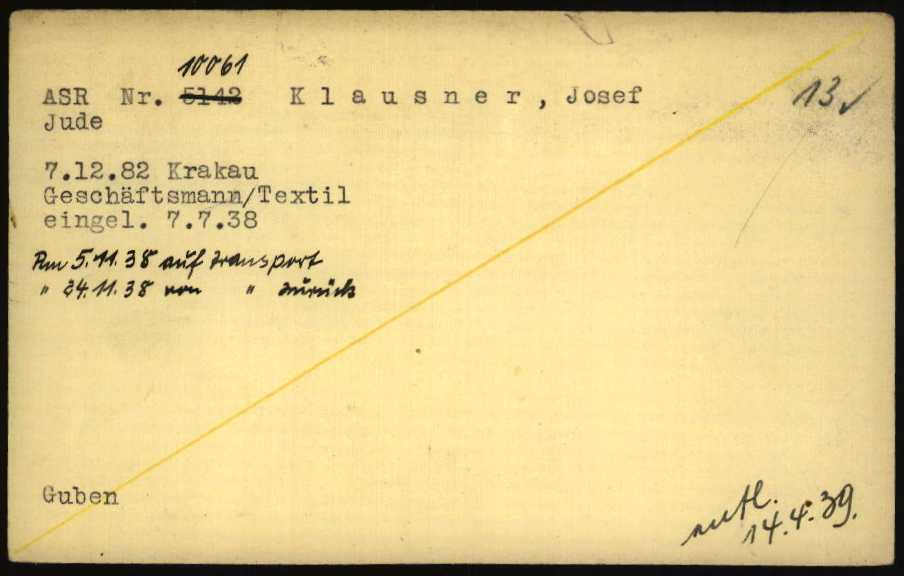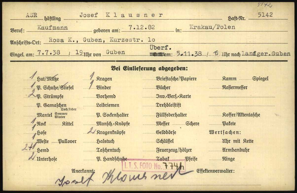 7.7.1938 Vater Josef Haft im Gefängnis Guben, dann KL Buchenwald