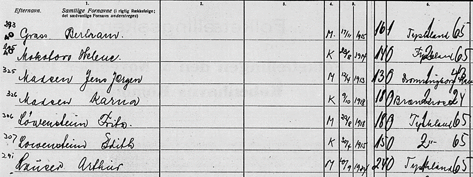 5.11.1940 Helene Mokotow bei Nordischem Zensus erfasst in Vesterbrogade in Kopenhagen bei einem Alija-Kursus