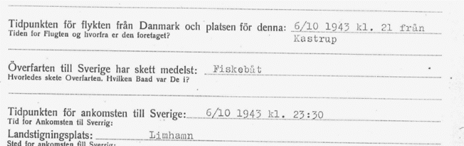 6.10.1943 Isidor und Grete Kaiser mit einem Fischerboot von Kastrup, Dänemark nach Linhamn, Schweden