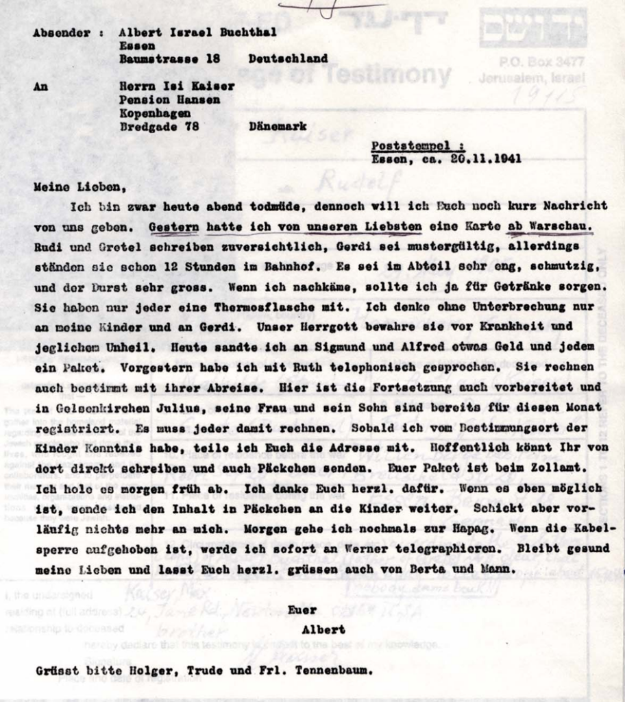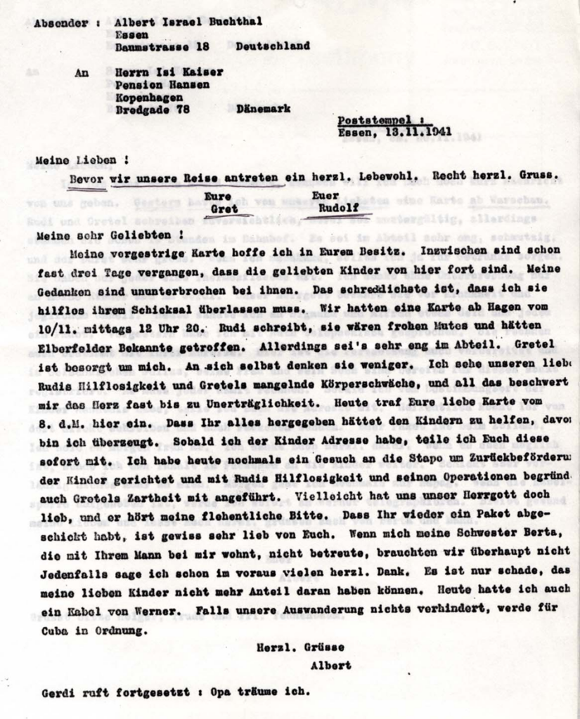 1941 Zwei Briefe von Albert Buchthal, Schwiegervater seines Bruders Rudolf