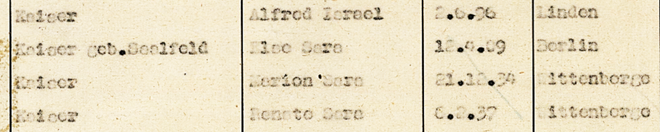 17.5.1939 Isidor mit Frau Grete, Bruder Alfred mit Frau Else und deren Töchtern Marion und Renate Kaiser in Berlin, Ballenstedter Straße 8