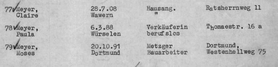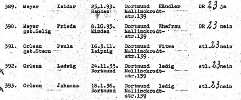 November 1941 Isidor und Frieda Meyer zusammen mit ihren Mitbewohnern, der Familie Orlean ursprünglich auf der Gestapoliste zur Deportation im Dezember 1941