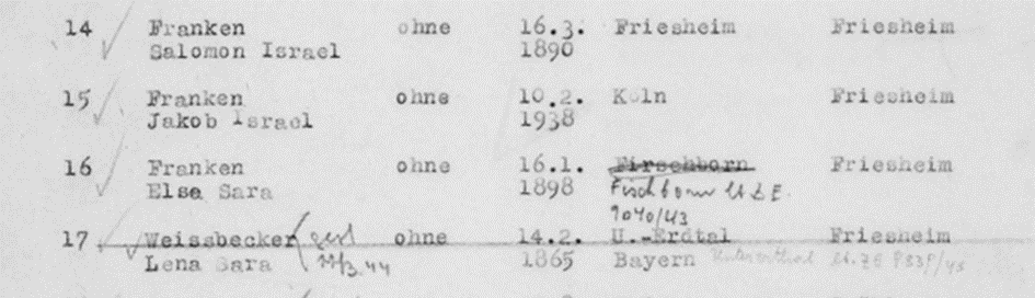 Simon Franken *17.2.1924 in Friesheim, Köln; ✡?