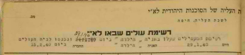 29.1.1940 Ankunft Haifa nach Abschluß von Verhandlungen zwischen Sochnut (Jewish Agency) und britischer Mandatsregierung