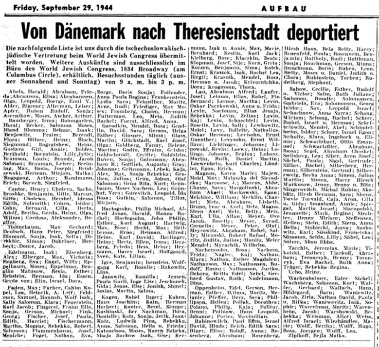 Alex Eisenberg auf der Theresienstadt-Liste im „AUFBAU“