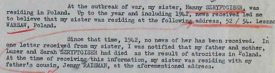 Mutter Sara Blima Szryftgiser geb. Engelscher *8.3.1892 in Warschau; ✡ 1943 in Warschau